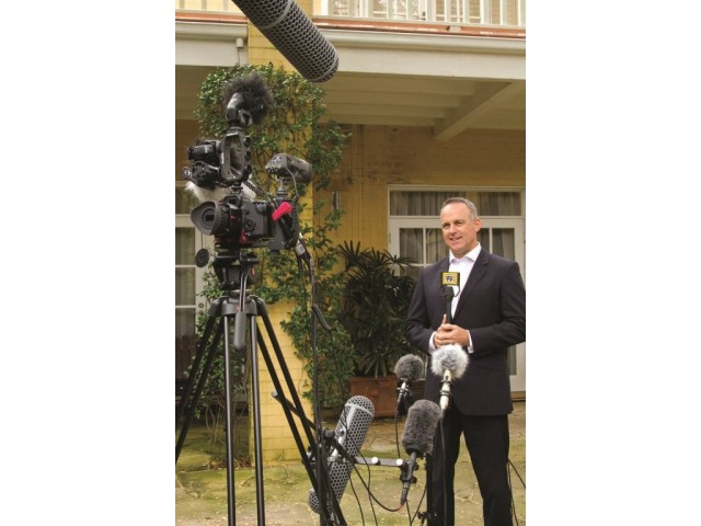 Mikrofon dolazi s skidivom naljepnicom na kojoj se može vidljivo staviti logo radio ili TV postaje.
