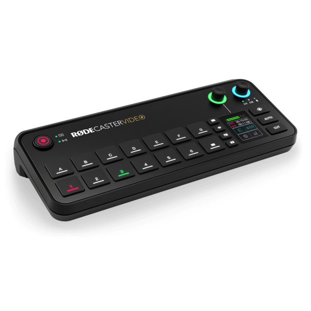 RØDECaster Video je inovativna sveobuhvatna video i audio produkcijska konzola koja revolucionira stvaranje sadržaja. S intuitivnim kontrolama za prebacivanje videa, snimanje i profesionalno miksanje zvuka, ova konzola poboljšava vaš tijek rada za studijske produkcije, video podcaste i događaje uživo.