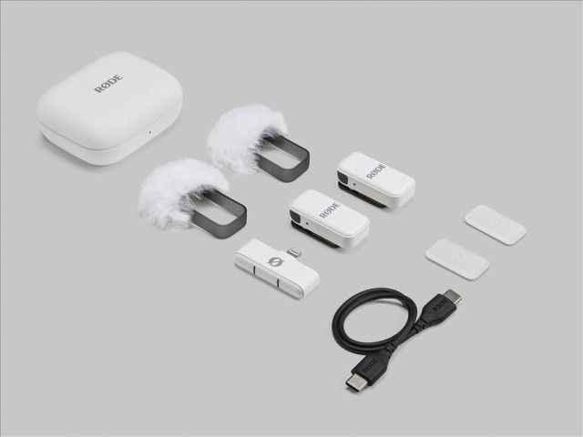 RØDE Wireless Micro je kompaktni bežični mikrofonski set koji nudi profesionalno snimanje zvuka čak i s minimalnim dimenzijama komponenti seta. Set se sastoji od 2x odašiljača s mikrofonom i 1x dvostrukog prijemnika, koji se izravno spaja na pametni telefon pomoću Lightning priključka. Za upravljanje snimanjem koristi se besplatna iOS i Android RØDE Capture aplikacija . Set uključuje magnete za pričvršćivanje na odjeću i zaštitne navlake otporne na vjetar za snimanje na otvorenom. Punjačka stanica Charge Case osigurava da su bežične komponente uvijek potpuno napunjene i zaštićene tijekom transporta. Uključen je i USB-C na USB-C kabel za napajanje.