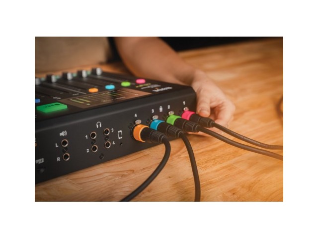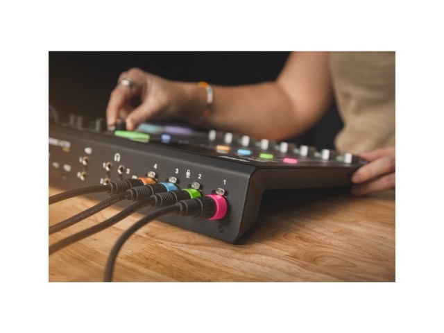 Boje prstenova odgovaraju bojama koje se koriste za pojedinačne kanale mikrofona na RØDECaster Pro.