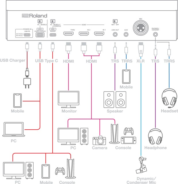 Uz Bridge Cast X možete se usredotočiti na stvaranje – od online igranja do podcasta, vlogova i drugog videosadržaja – i ne gnjaviti se s kabelima i raznim specijaliziranim dodacima. Integrirani dizajn pojednostavljuje povezivanje i smanjuje gužvu kabela, dok vam intuitivno sučelje omogućuje besprijekorno miksanje zvuka i kontrolu svih funkcija koje su vam potrebne. Uz višestruke USB-C i HDMI priključke (samo jedan HDMI ulaz može biti aktivan istovremeno, besprijekorno prebacivanje uživo između HDMI ulaza nije podržano), možete povezati sve svoje uređaje i izbjeći promjenu postavki svaki put kada želite streamati zakazani stream. ručno povezati sve.