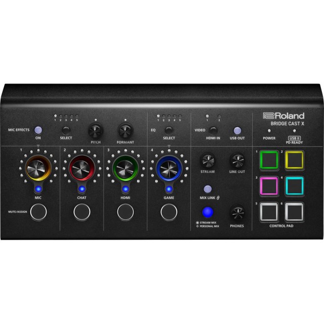 Poboljšajte svoje streamove uz Bridge Cast X, kompaktno sve-u-jednom stolno rješenje s praktičnim kontrolama i profesionalnim Roland A/V značajkama. Recite zbogom neredu sitnih dodataka i ujedinite svoj radni lanac s više priključaka za igraće konzole, računala, kamere i audio uređaje. Slomite konkurenciju sjajnim značajkama kao što su dvostruki audio miksevi, podrška za profesionalne mikrofone (XLR, phantom), obrada vokalnih efekata, ergonomska kontrola podloge i više...