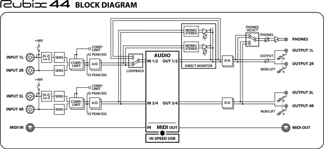 Vrlo dinamični izvori poput udaraljki često trebaju ukrotiti razinu s obradom dinamike. Također je uobičajeno primijeniti kompresiju vokala i basa tijekom praćenja kako bi se ujednačile razine i olakšalo miksanje ovih izvora. Rubix44 je opremljen kompresorom/limiterima dostupnim preko ploče na ulazima 1/2 i 3/4, osiguravajući dobre, vruće signale bez izrezivanja i neželjenih izobličenja. Dinamička obrada je potpuno analogna, pruža glatku i transparentnu kontrolu bez dodane latencije.