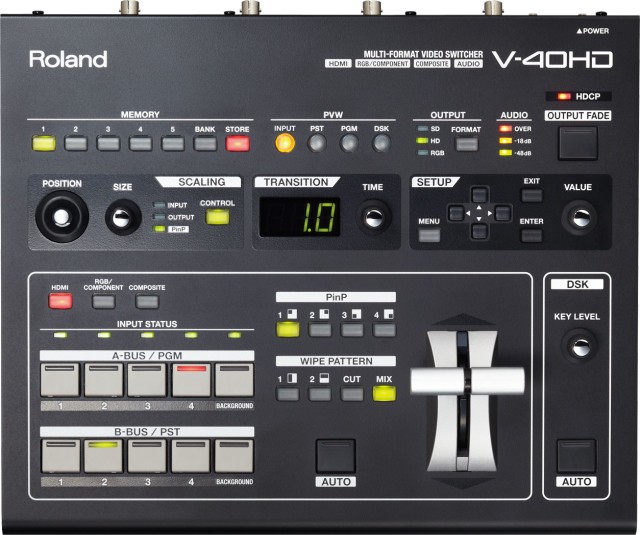 Roland V-40HD Multi-Format Live Video Switcher je dobrodošao dodatak snažnoj liniji modela V-1600HD i V-800HD. V-40HD Live Video Switcher je idealan za bilo koji događaj uživo ili instalaciju koja zahtijeva slobodu povezivanja raznih izvora, bilo da su digitalni ili analogni, računalni ili video format. Posebno je pozicioniran za podršku konfiguracijama koje koriste popularne HDMI kamere kao i računala.