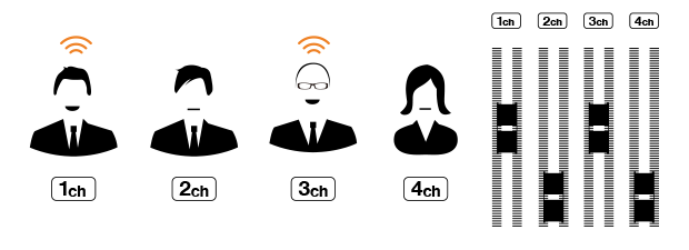 Funkcija automatskog miksanja osigurava ispravan miks za više sudionika panela na konferencijama automatskim podešavanjem razina zvuka na više audio izvora, omogućujući AV operateru da se usredotoči na prebacivanje videa. Može se postaviti ponderiranje specifično za kanal, dajući moderatoru ili prioritetnom audio kanalu višu razinu glasnoće.