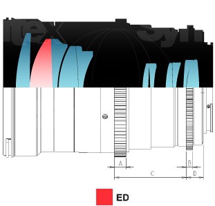 Konstrukcija ovog objektiva sastoji se od 11 elemenata u 7 skupina, uključujući 1 staklo za disperziju ekstra niske svjetlosti (ED) kako bi se ponudila najveća moguća razlučivost. Ultra Multi Coating (UMC) koristi se za optimiziranje prodora svjetlosti i smanjenje neželjenog odbljeska i sjena. Zahvaljujući ovom optičkom dizajnu, ima minimalnu udaljenost fokusiranja od 0,8 m za snimanje objekata na vrlo maloj udaljenosti. Dizajn lebdećih optičkih elemenata osigurava što više svjetla i povećava rezoluciju smanjenjem izobličenja i sferne aberacije