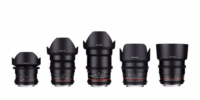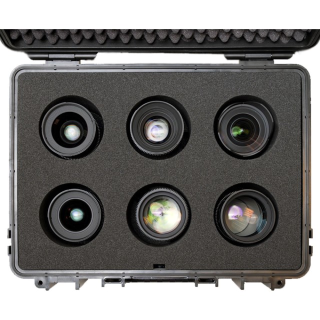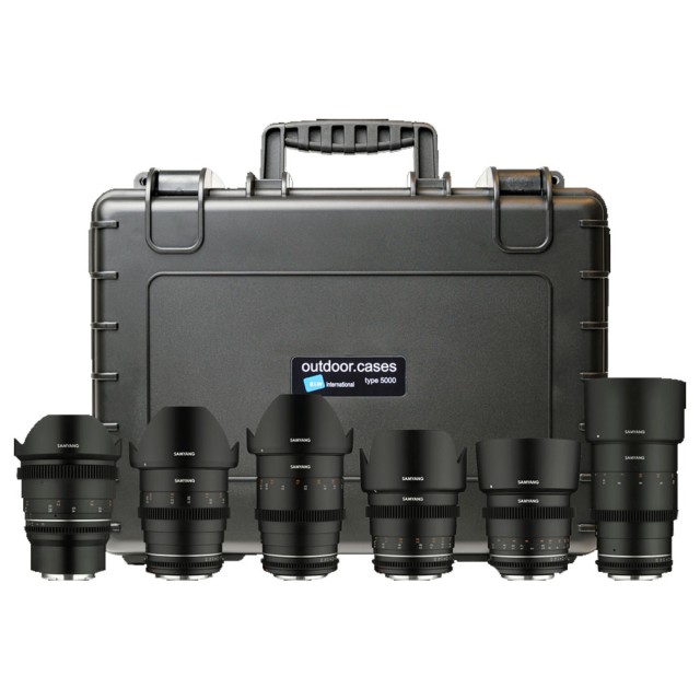 Sniženi set EF leća tvrtke Samyang uključujući torbu za nošenje s pjenastom podstavom.