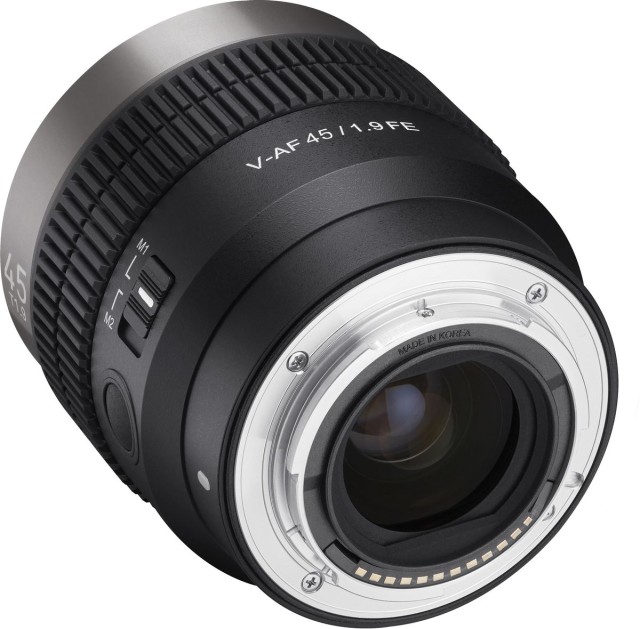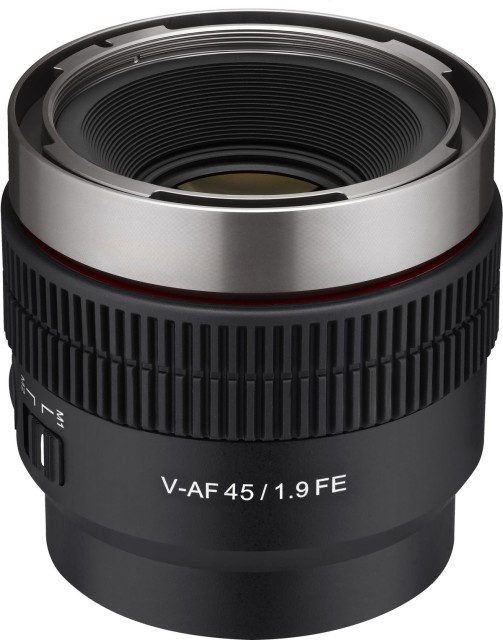 Řada filmových AF objektivů Samyang V-AF se soustředí na vysokou obrazovou kvalitu při minimalizaci rozměrů a hmotnosti těla (<300 g) pro maximálně snadné použití s kamerovými stabilizátory a drony. Řada nabízí několik různých pevných ohnisek (20, 24, 35, 45, 75, 100) se stejnými rozměry i sladěnou barevností, ozubeným ostřícím prstencem, a také clonou s 9 lamelami pro přirozené podání obrazu mimo hloubku ostrosti. Z řady mírně vybočuje model 100mm T2.3 FE délkou a světelností T/2,3. Z řady mírně vybočuje model 100mm T2.3 FE délkou a světelností T/2,3. Objektivy Samyang V-AF poskytují velmi dobré optické rozlišení vhodné pro přístroje s až 4K a 8K snímači; zajímavostí je rovněž dvojice LED signalizujících běžící záznam, což dále usnadní použití objektivů na stabilizátorech apod. Tlačítko „Focus Save“ slouží k uzamčení nastavení zaostření během AF provozu, integrovaný přepínač „Custom Switch“ pak může sloužit např. k přepnutí funkce prstence z ostření na nastavení clony v režimu AF. Model 45 mm T/1,9 FE v prodeji od 6/2023.