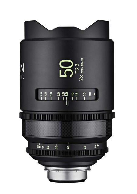 Samyang Xeen 2x Anamorphic 50mm T2.3 model temelji se na seriji Xeen Meister i nudi istu veličinu i raspored kontrola kao i dugi hod fokusnog prstena (300º). Ova 2x anamorfna leća nudi visoke performanse za moderne 4K/8K FF senzore i proizvodi sliku koja pokriva format CinemaScope 2,55:1 (nakon istezanja; na FF senzorima). Objektiv se može pohvaliti dizajnom koji koristi vrhunske materijale uključujući. karbonski kompoziti i fosforescentna boja za izoštravanje oznaka za dobru čitljivost u mraku.