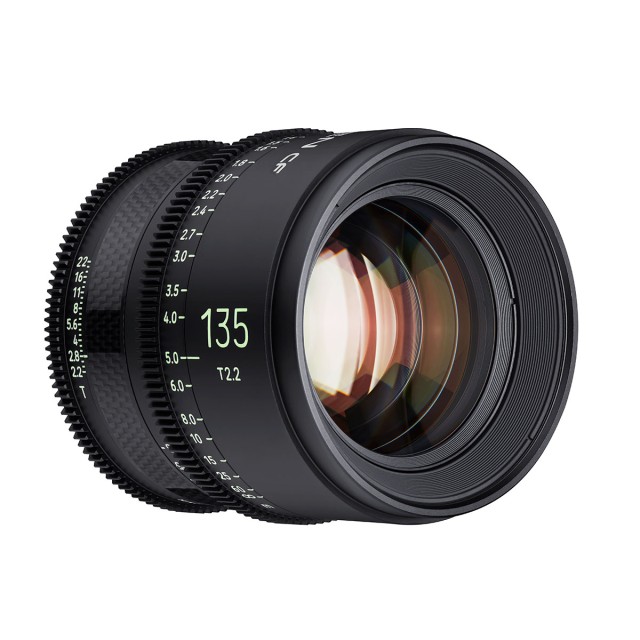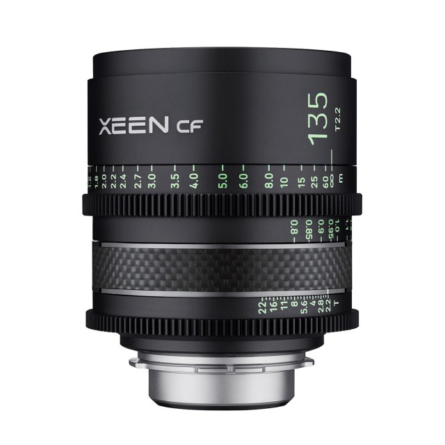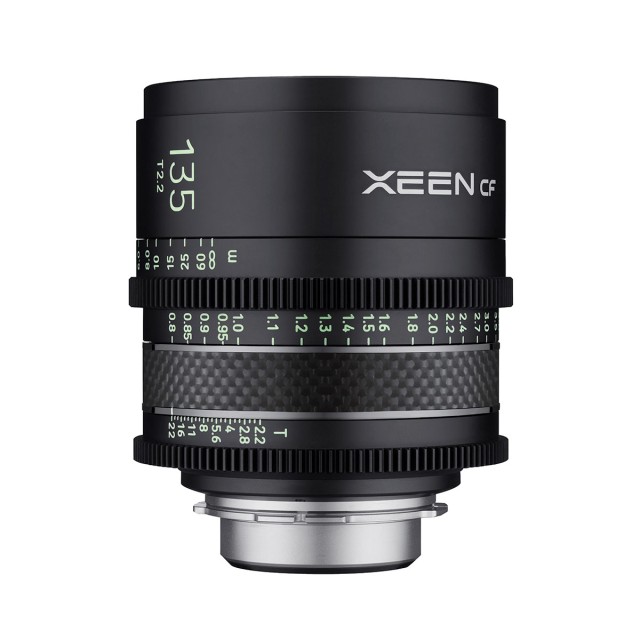 Samyang Xeen CF 135mm T2.2 ručni filmski objektiv nudi visoku optičku rezoluciju (za moderne 4K/6K/8K FF senzore), konstrukciju koja koristi karbonske elemente za manju težinu uz zadržavanje visoke čvrstoće, nazubljeni otvor blende i fokusni prsten (raspon od 200° ), X-Coating završna obrada za suzbijanje odsjaja i lako čitljive luminiscentne oznake. Proizvodi se u EF, FE i PL varijanti.