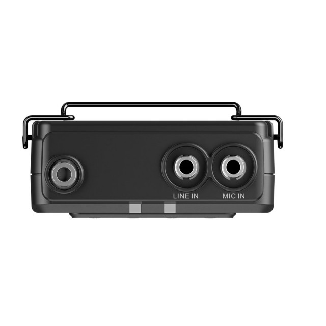 Vanjski ulaz omogućuje spajanje prijemnika na uređaje s mikrofonom ili linijskim priključkom, kao što je mikrofon sa puškom, mikser, snimač ili glazbeni player za snimanje dodatnog zvuka ili glazbe. Sustav se može napajati preko svojih USB-C priključaka, što mu omogućuje rad satima na 5V USB powerbank-u.