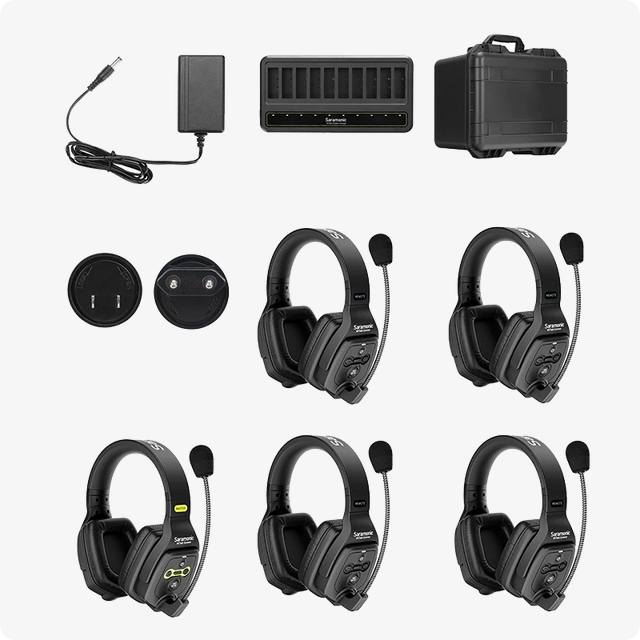 Saramonic WiTalk-WT5D je full-duplex bežični interfonski sustav s dva slušalice za 5 osoba i tehnologijom dvostrukog slušanja za profesionalne produkcijske timove. Idealan za film, TV, pozornicu, fotografiranje i sport, nudi komunikaciju bez ruku i omogućuje kretanje zahvaljujući bežičnom dizajnu. Ima domet od 400 m s produljenim vijekom trajanja baterije, a sve je pohranjeno u robusnom, vodootpornom kućištu.