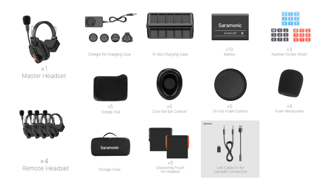Saramonic WiTalk9 WT5S je bežični interfonski sustav za 9 osoba, bez hub-a, s punim dupleksom, dizajniran za besprijekornu timsku komunikaciju. Ovaj komplet uključuje jednu glavnu i četiri daljinske slušalice, nudeći rad bez upotrebe ruku i domet do 500 m. Uz ClearTalk™ tehnologiju poništavanja buke i DECT tehnologiju, osigurava kristalno jasnu, sigurnu i pouzdanu komunikaciju čak i u bučnim okruženjima.