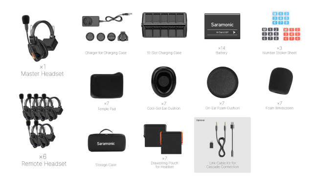 Saramonic WiTalk9 WT7S je bežični interfonski sustav za 9 osoba, bez hub-a, s punim dupleksom, dizajniran za besprijekornu timsku komunikaciju. Ovaj komplet uključuje jednu glavnu i četiri daljinske slušalice, nudeći rad bez upotrebe ruku i domet do 500 m. Uz ClearTalk™ tehnologiju poništavanja buke i DECT tehnologiju, osigurava kristalno jasnu, sigurnu i pouzdanu komunikaciju čak i u bučnim okruženjima.