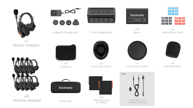 Saramonic WiTalk9 WT9S je bežični interfonski sustav za 9 osoba, bez hub-a, s punim dupleksom, dizajniran za besprijekornu timsku komunikaciju. Ovaj komplet uključuje jednu glavnu i četiri daljinske slušalice, nudeći rad bez upotrebe ruku i domet do 500 m. Uz ClearTalk™ tehnologiju poništavanja buke i DECT tehnologiju, osigurava kristalno jasnu, sigurnu i pouzdanu komunikaciju čak i u bučnim okruženjima.