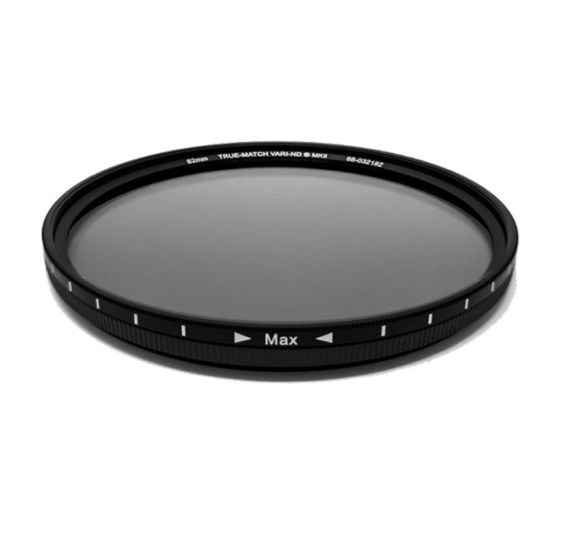 True-Match Vari-ND MKII filter neutralne gustoće s promjenjivom gustoćom tvrtke Schneider je čvrsti filter neutralne gustoće s podesivim faktorom filtera od 0,45 do 3,45 koji omogućuje smanjenje od 1,5 do 11,5 stupnjeva. Ovaj filter od 82 mm zatamnjuje cijelo područje slike, omogućujući šire otvore blende ili dulje brzine zatvarača nego što je inače potrebno. Promjenjiva gustoća se lako kontrolira okretanjem prednjeg prstena filtera, što omogućuje određivanje dodatne potrebne duljine ekspozicije. Usporavanjem vremena ekspozicije može se poboljšati razina zamućenja slike i osjećaj pokreta; a podešavanjem otvora blende objektiva može se preciznije kontrolirati dubina polja. To je posebno korisno pri snimanju slika na jakom sunčevom svjetlu, gdje je postizanje dugih brzina zatvarača i širokih otvora blende inače nemoguće.