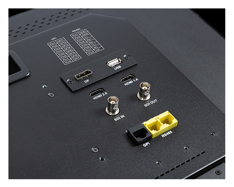 Profesionalni stropni monitor s 21,5 IPC LCD panelom (1920x1080, 16:9, 250 cd/m², 3000:1, kutovi gledanja 178°) i 3G-SDI, HDMI 2.0, HDMI 1.4, RS-485, GPI, DP (DisplayPort) i USB ulazi. Zahvaljujući velikoj površini prikaza i 3D LUT korekcijama, idealan je kandidat za postprodukciju, režiju ili pozicije kamere na lokacijama snimanja! 3D LUT korekcije uključuju C-Log Standard, C-Log Full, S-log2, S-log3, BMD-4Klog (podržava uvoz do 16 tablica 17x17x17, 33x33x33 i 65x65x65 putem USB sučelja). Monitor također nudi signalno svjetlo, SDI izlaz, integrirani zvučnik, izlaz za slušalice, baterijsku ploču za V-Mount baterije (po izboru Gold Mount), napajanje s XLR4 konektorom i robustan aluminijski okvir. Naravno, funkcije za pomoć pri fokusiranju, zumiranje, Pixel-to-Pixel, rotaciju slike, kontrolu pola okvira, prikaz audio mjerača, itd. mogu se opcijski isporučiti uključujući. aluminijski kofer po narudžbi.