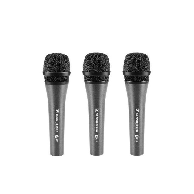e 835-S - 3 kom u paketu po akcijskoj cijeni! e 835-S je kardioidni mikrofon s prekidačem za najširu upotrebu s ugrađenim sustavom za montiranje na udarce. Pogodan je za snimanje pjevanja i glazbenih instrumenata, ali i za vrlo dobru razumljivost govora.