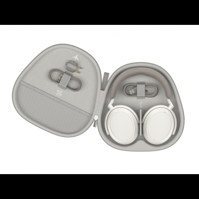 Kontrolirajte i podešavajte zvuk putem intuitivnih dodirnih površina i mobilne aplikacije, gdje možete podesiti ekvalizator, ANC ili spremiti profile za različita okruženja. Paket uključuje elegantnu torbicu, USB-C kabel za punjenje, 3,5 mm audio kabel i adapter za zrakoplov.