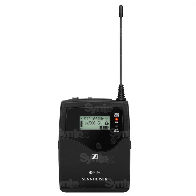 Snažni nosivi odašiljač evolution wireless G4 500P serije sa širim pojasom i snagom prijenosa. Serija EW 500 G4 također nudi veću RF snagu (prebacivanje u rasponu od 10/30/50 mW) i trajanje baterije do 8 sati. Pakiranje sadrži nosivi odašiljač SK 500 G4 i 2 AA baterije.