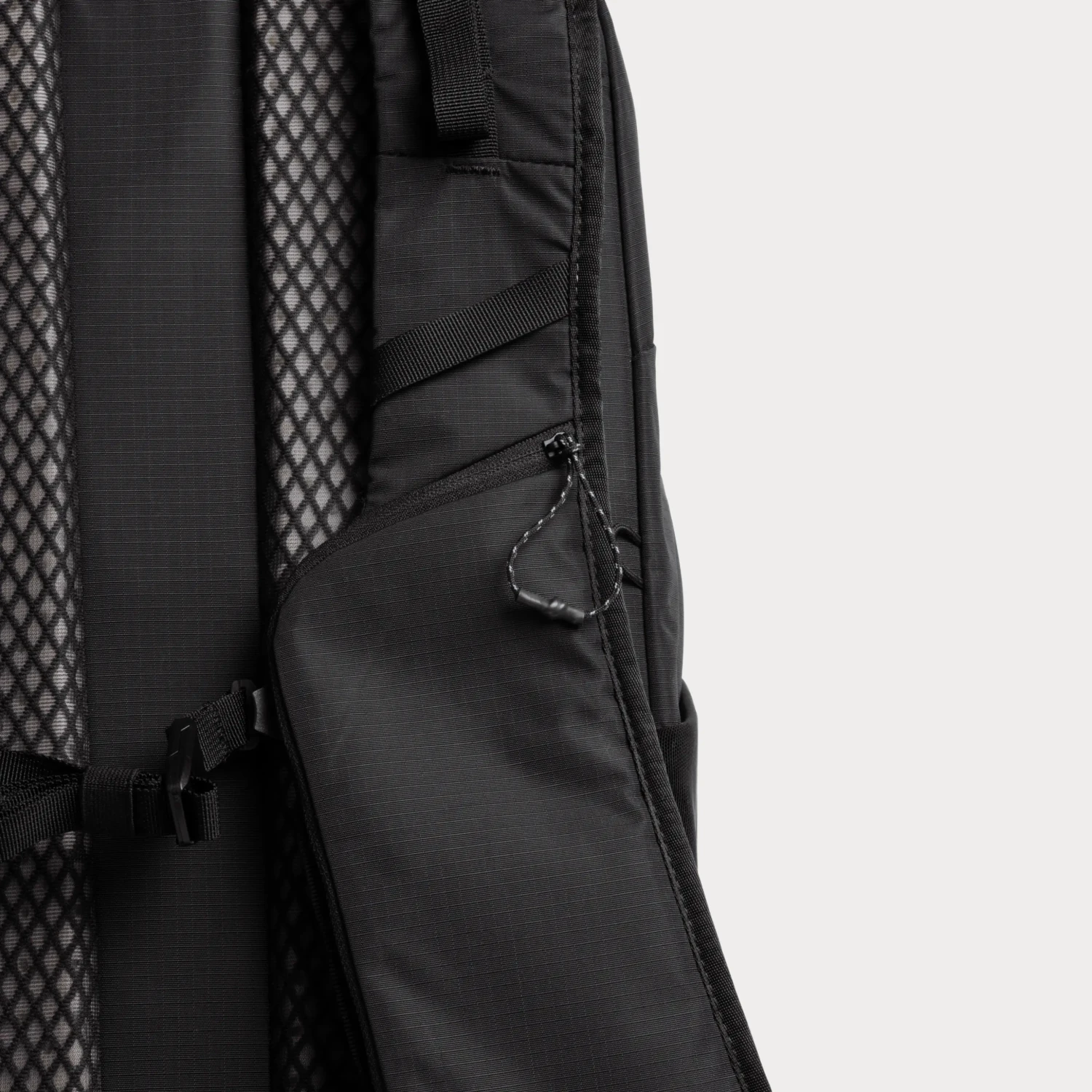 Tkanina LightWeave™ Ripstop s dvostrukim slojem DWR završne obrade bez PFAS-a pruža vodoodbojnu zaštitu. Magnetski preklop odbija vodu od prednjeg patentnog zatvarača, smanjujući prodiranje vode tijekom pljuskova.