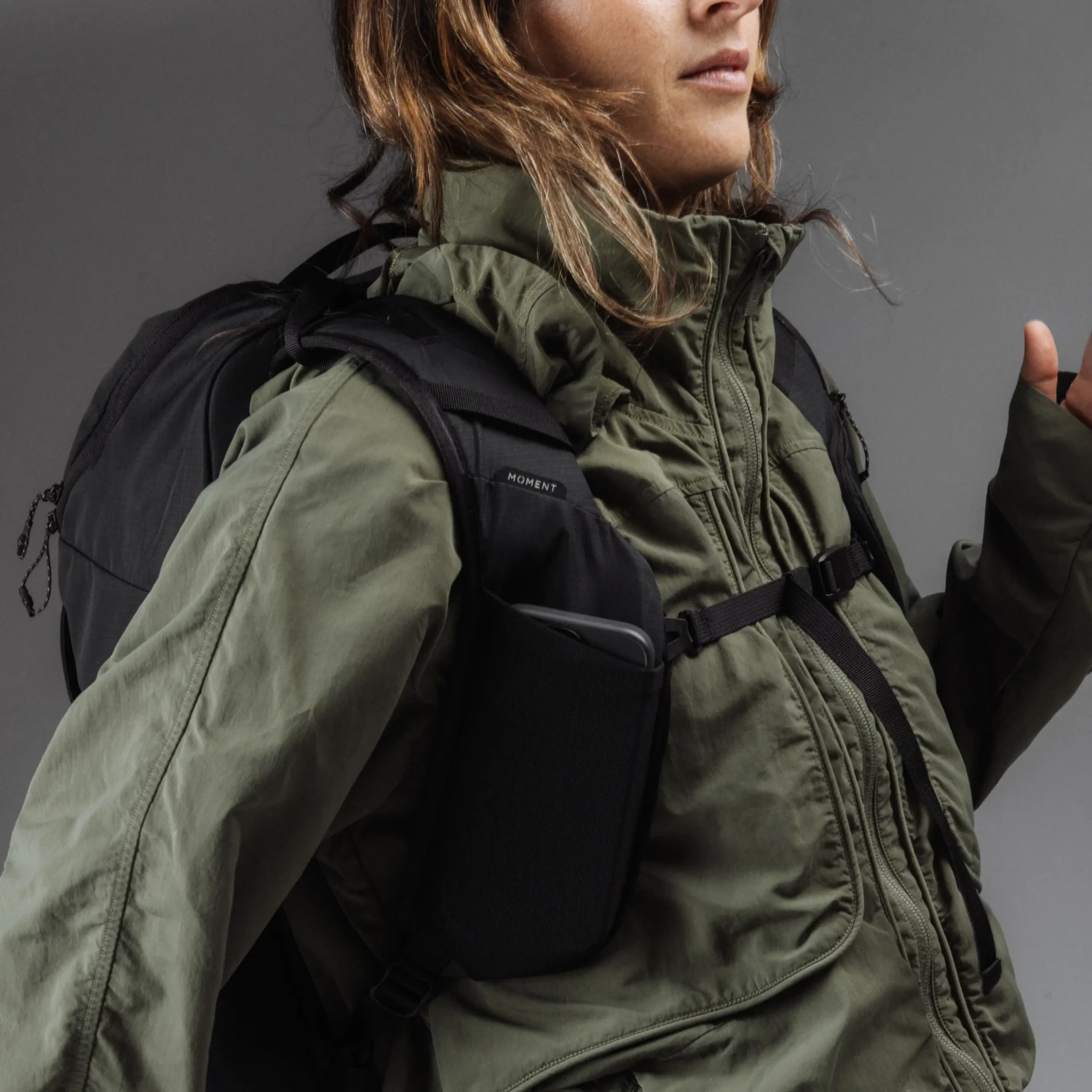 Naramenice inspirirane prslukom s rastezljivim džepovima s patentnim zatvaračem i integriranim MagSafe kanalom za punjenje za brzi pristup vašem fotoaparatu, filmu, telefonu, filterima i grickalicama izravno na vašem tijelu.