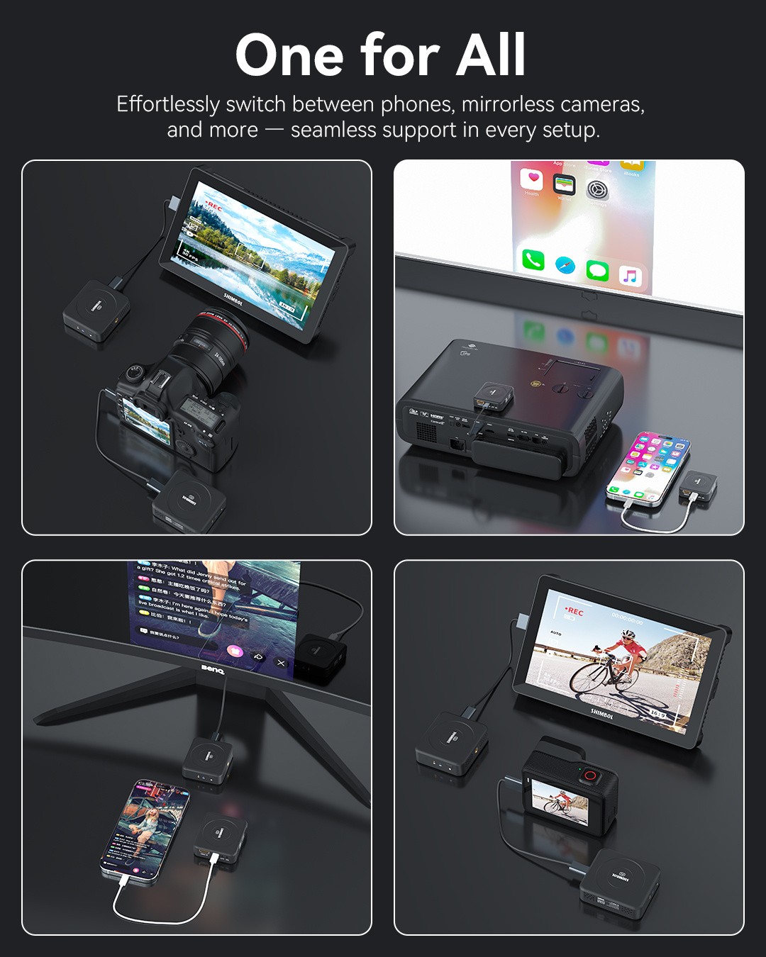 Kompatibilnost s MagSafeom omogućuje vam trenutno spajanje na iPhone 12–17 za besprijekorne mobilne tijekove rada, dok HDMI/USB-C ulazi podržavaju kamere, tablete, prijenosna računala i još mnogo toga. Kompaktni kvadratni dizajn dimenzija 70 × 62 × 20,5 mm (88,26 g) pristaje bilo gdje - gimbalima, platformama za snimanje, dronovima ili ručnim uređajima. Niska potrošnja energije (<2 W) i inteligentno upravljanje toplinom održavaju ga hladnim tijekom dugih snimanja.