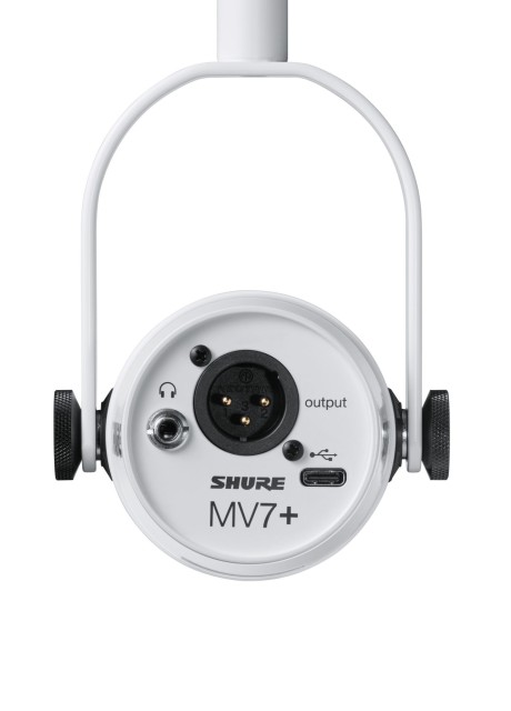 MV7+ je Shure dinamički mikrofon koji omogućuje analognu XLR vezu i izravnu digitalnu konverziju putem USB sučelja . MV7+ poboljšan je u odnosu na originalnu verziju s prilagodljivim LED panelom osjetljivim na dodir, snažnim DSP značajkama i još boljim zvukom. Mikrofon je namijenjen zahtjevnim podcasterima, streamerima i glazbenicima, a izravno praćenje osigurano je ugrađenim izlazom za slušalice . Način rada Auto Level prilagođava pojačanje mikrofona na temelju udaljenosti, glasnoće i prostorne detekcije za optimizirane razine zvuka. Novi Digital Popper Stopper™ uklanja oštre eksplozivne zvukove, tako da se tijekom snimanja mogu izbjeći akustična izobličenja u audio zapisima i fizički iskačući filtar na kameri.
