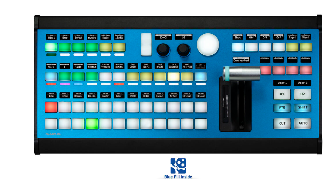SKAARHOJ Air Fly Pro Desktop Controller with Blue Pill Inside je visokoučinkovita radna površina za kontrolu na stolnom računalu, izrađena za produkciju uživo, upravljanje PTZ kamerama i primjene prebacivanja videozapisa. Pokrećući se arhitekturom Blue Pill Inside tvrtke SKAARHOJ, integrira naprednu obradu izravno u jedinicu, eliminirajući potrebu za vanjskim hardverom za kontrolu i omogućujući visoko prilagodljive radne procese s više uređaja.