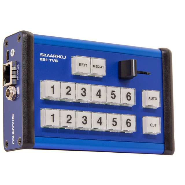 E21-TVS modeli imaju 2 reda od 6 gumba za odabir ulaza, gumbe Cut i Auto i 2 korisnička gumba.