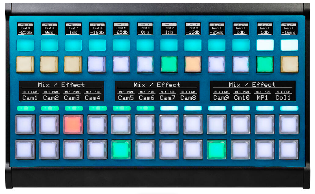 Interfejs kombinira tipke NKK industrijskog standarda s grafičkim OLED zaslonima i RGB LED indikatorima s višerazinskim mjerenjem, pružajući taktilnu kontrolu i vizualnu povratnu informaciju u stvarnom vremenu. To operaterima omogućuje praćenje razina signala, prebacivanje izvora i upravljanje produkcijskim tijekovima rada s jasnoćom i preciznošću u dinamičnim okruženjima.