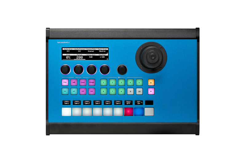 SKAARHOJ PTZ Pro V2 kontroler kamere s Blue Pillom unutar je profesionalna IP-bazirana kontrolna površina za PTZ s joystickom na tri osi, kotačićem za fokus, OLED-kontrolama i podrškom za PoE, dizajnirana za precizno upravljanje više kamera u okruženjima uživo.