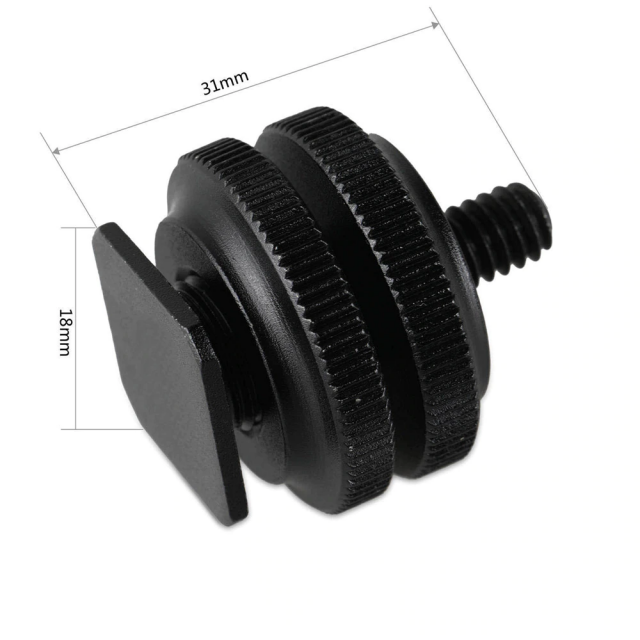 Adapter za Hot Shoe od 3/8" na 1/4" uključen je uz CoolArm11 i može se koristiti za pričvršćivanje dodataka s priključkom od 1/4" na Hot Shoe priključka fotoaparata. Navoj je 3/8" do 1/4" . Gornji dio navoja je 1/4", donji je 3/8".