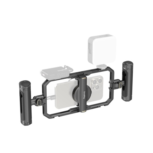 SmallRig All-in-One Video Kit za kreatore pametnih telefona Quick Basic Edition 4597 pruža učinkovito i kompaktno rješenje za profesionalno snimanje videa pametnim telefonima. Komplet uključuje univerzalni okvir za pametni telefon, ručku za brzo otpuštanje s bežičnom kontrolom i bočnu ručku za brzo otpuštanje. Nadograđeni univerzalni kavez ima višestruke rupe s navojem od 1/4"-20 i nosače za hladnu obuću, što omogućuje proširenje širokog raspona profesionalne video opreme. Štoviše, omogućuje pričvršćivanje magnetskih filtara od 67 mm i ima otvor za remen za nošenje na ramenu i podnožje utor za montažu.