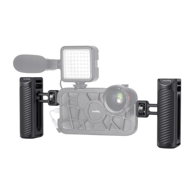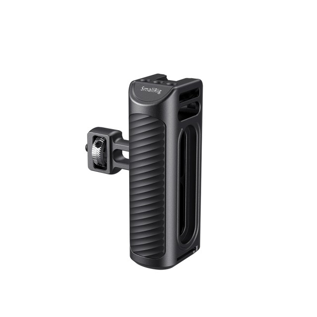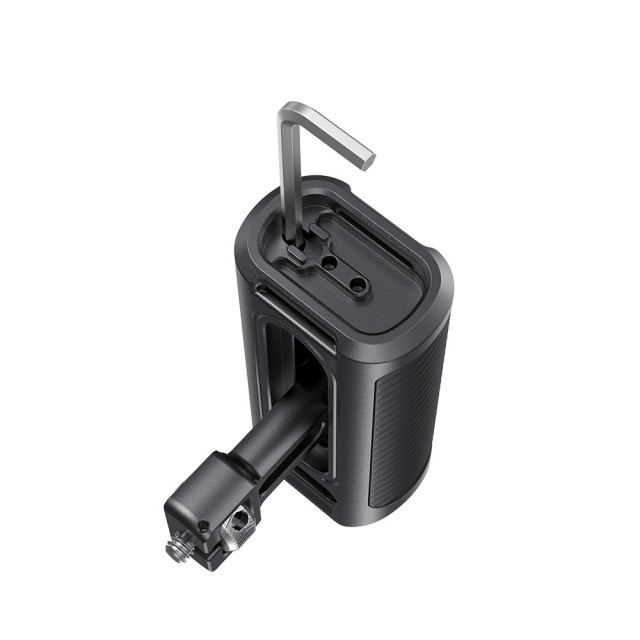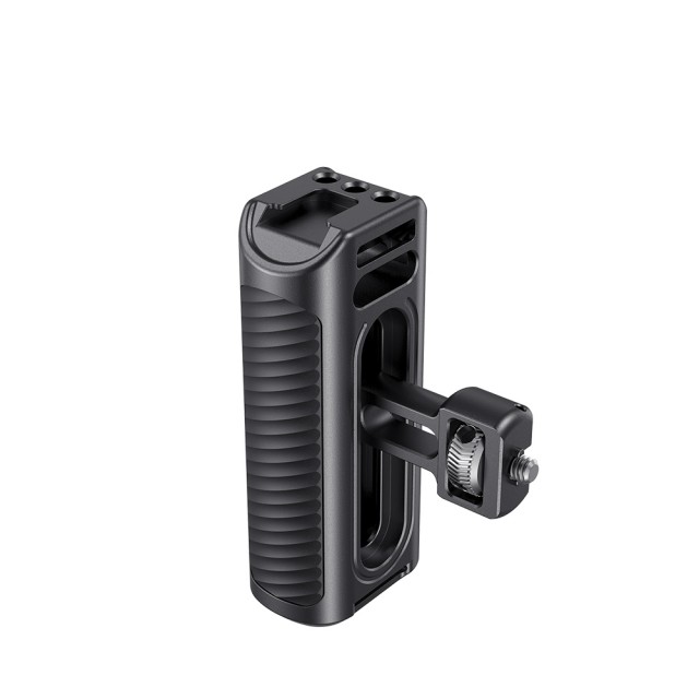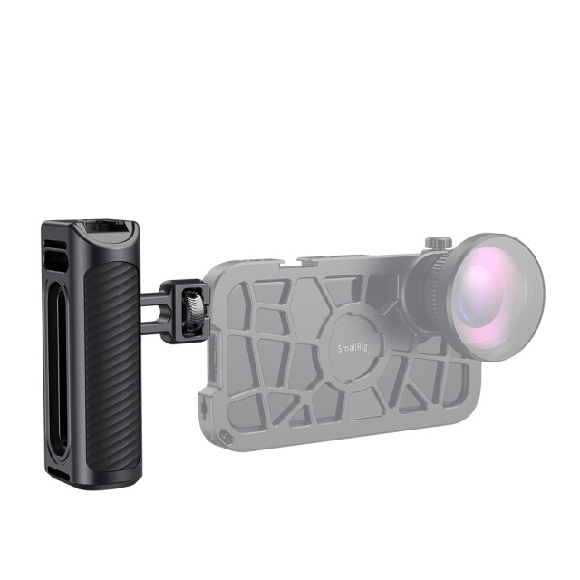SmallRig aluminijska bočna ručka za HSS2424 kavez za pametni telefon dizajnirana je da odgovara SmallRig kavezima za telefone i poboljšava udobnost držanja za izdržljivije i stabilnije podizanje telefona. Kompatibilan je s SmallRig Pro kavezima za mobilne telefone kao što su 2775, 2776 itd. i SmallRig univerzalnim kavezima kao što su CPU2391B, 2791 itd. Ugrađeni ključ može se koristiti za podešavanje visine ručke i za zatezanje vijka za zaključavanje. Sadrži tri standardne rupe s navojem 1/4-20 i hladan nosač na vrhu za montažu dodataka poput mikrofona ili LED svjetla. Drška je kompatibilna s remenom za ruku SmallRig PAC2456 za sigurnije i stabilnije snimanje iz ruke. Težak samo 224 g, ima aluminijsko kućište s neklizajućim silikonskim premazom koji osigurava udobno držanje tijekom dugotrajne uporabe.