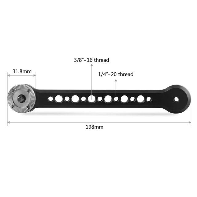SmallRig Arri 1807 Extension Arm pruža produžetak od 198 mm za standardne Arri ručke s rozetom i drugu opremu za montiranje na rozetu u Arrijevom stilu kao što su RED, URSA Mini, Sony FS7 i drugi. Ima vanjski navoj M6 na jednom kraju i unutarnji navoj M6 na drugom kraju. Sama ruka ima nekoliko rupa s navojem od 3/8"-16 i 1/4"-20 za pričvršćivanje dodataka.