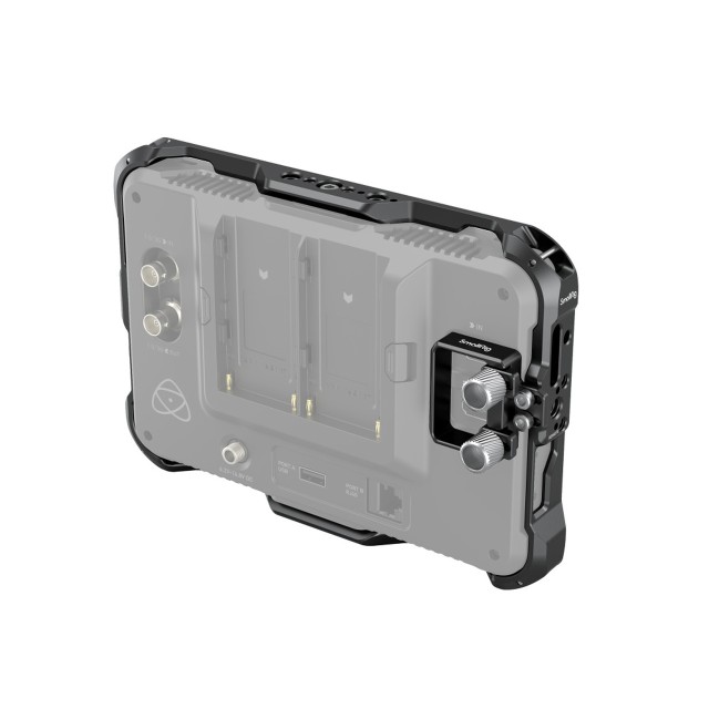 Kavez SmallRig Atomos Shinobi 7 (Kit) 3456 je potpuni kavez od aluminijske legure opremljen različitim točkama za pričvršćivanje dodataka. Sadrži gornju i donju NATO šinu, 1/4'-20, 3/8'-16 rupe s navojem za brzo otpuštanje i stabilnu montažu magične ruke i nosača monitora (ID: 2116 , 2071 , 2028 , 2385 , 2347 ) i odgovarajuću osnovnu ploču (ID: 1598 , 3204 , 2107 ) na vrhu za V-mount bateriju i bežični odašiljač slike. Kavez omogućuje montažu originalnog Atomos štitnika za sunce i ugrađenog štitnika za sunce na vrhu i dnu i ima 1/4'-20, 3/8'-16 rupa s navojem sa strane za ručku (ID: 2913 , 2914,HSN2093 ). Njegova kabelska stezaljka štiti sučelje monitora. Na naramenici za ID: 2793 postoje četiri rupe koje olakšavaju nošenje monitora preko ramena i omogućuju brzo otpuštanje naramenice. Set također uključuje brzoupijajuću zaštitu za ekran (ID: 3455) koja štiti ekran monitora od otisaka prstiju, prskanja vode, prašine, ogrebotina i udaraca.