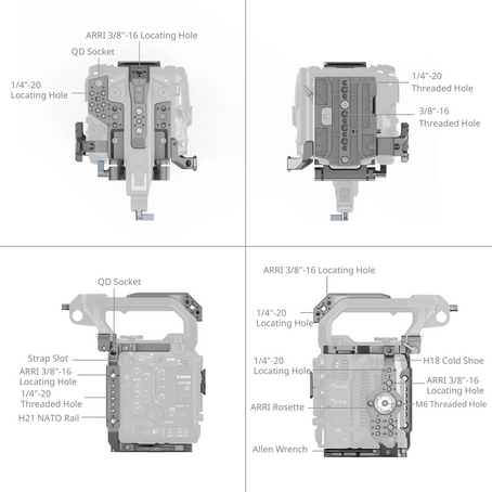 SmallRig Basic Cage Kit za Canon C400 (4947) dizajniran je za strijelce koji trebaju svestranost i jednostavnost korištenja. Zahvaljujući modularnom i fleksibilnom dizajnu , ovaj se komplet prilagođava različitim scenarijima snimanja, bilo da snimate u pejzažnoj ili portretnoj orijentaciji. Nudi niz sučelja za montažu , uključujući više ugrađenih točaka za montažu, za podršku osnovnim dodacima kao što su sustavi za praćenje fokusa, monitori i jedinice napajanja.