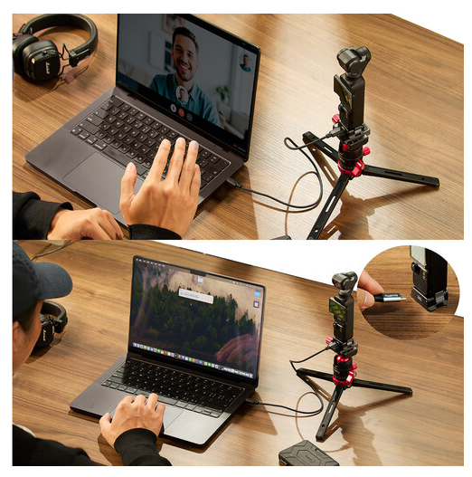 Montirajte i napajajte svoj DJI Osmo Pocket 3 pomoću SmallRig adaptera za bateriju, lagane aluminijske baze od 30 g s preklopnom stezaljkom s 2 kraka, integriranom pločom za brzo otpuštanje tipa Arca, navojem protiv uvrtanja od 1/4"-20 i prolaznim USB-C punjenjem (muški-ženski) sa silikonskim jastučićima za držanje bez ogrebotina i stabilan rad u ruci ili na stativu.