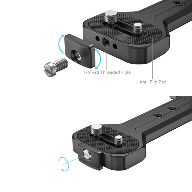 Sadrži više navoja 1/4"-20, ARRI 3/8"-16 i hladnu papučicu za montiranje dodataka kao što su originalni gimbal stativ, ploča za kameru i 2346 nosač monitora. Ručka se može konfigurirati za desnu ili lijevu ruku da odgovara vašim potrebama. U pakiranju je i plosnati odvijač za pričvršćivanje vijka ručke koji je pohranjen s donje strane.