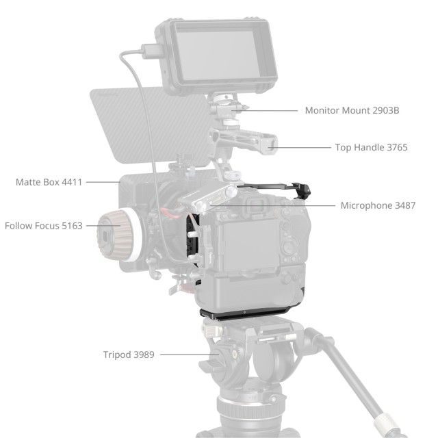 Integrirana Arca-Swiss pločica za brzo otpuštanje omogućuje brzo i sigurno prebacivanje između snimanja u ruci, stabilizatora (DJI RS 2 / RSC 2 / RS 3 / RS 3 Pro / RS 4 / RS 4 Pro) i stativa. Prednja rupa za pozicioniranje 1/4"-20 podržava stezaljke za šipke (ID 3276) za šipke promjera 15 mm. Dodatne značajke uključuju utore za narukvice za zapešće (ID 3848, 2456) i QD priključak za remene za rame (ID 4118B). Ugrađeni dvostruki ključ omogućuje jednostavno sastavljanje i podešavanja na setu.