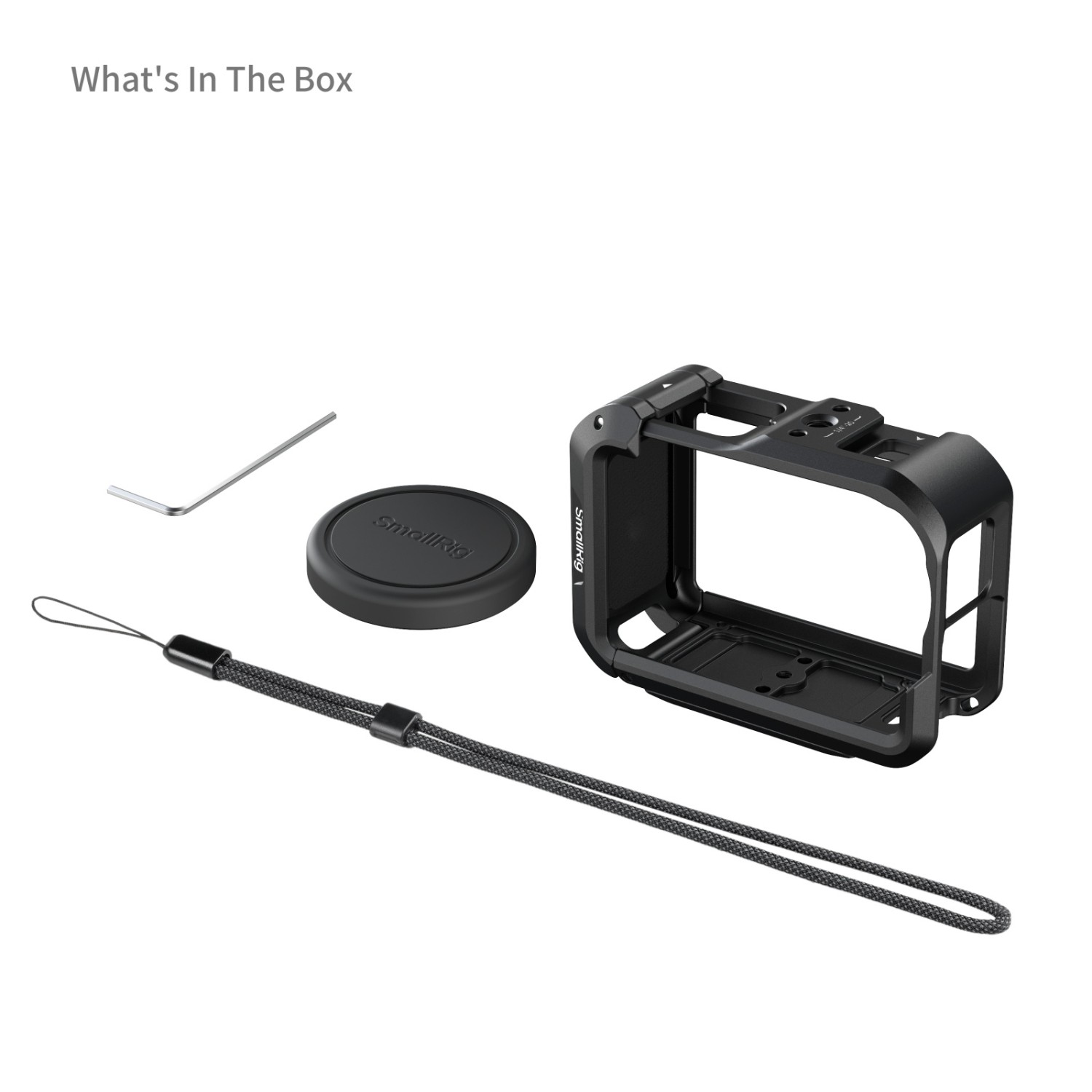 SmallRig Cage za DJI Osmo Action 6 (Napredno izdanje) 5887 dizajniran je posebno za DJI Osmo Action 6. Ovaj metalni kavez s punim poklopcem pruža robusnu zaštitu od udaraca, a istovremeno osigurava nesmetan pristup svim gumbima i priključcima. Višestruka sučelja za proširenje omogućuju besprijekorno pričvršćivanje dodatne opreme, poboljšavajući učinkovitost snimanja. Komplet uključuje kavez, remen za zglob, silikonski poklopac objektiva i imbus ključ.