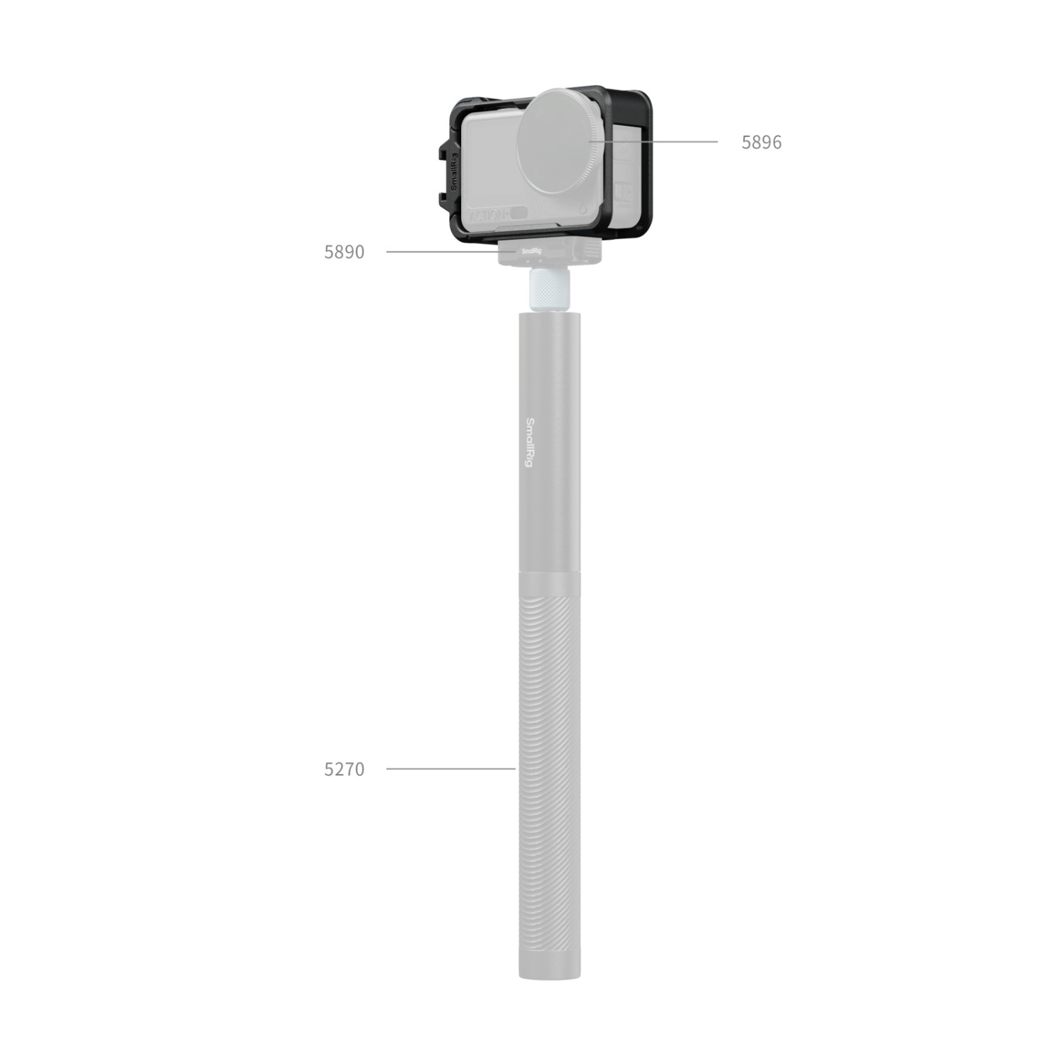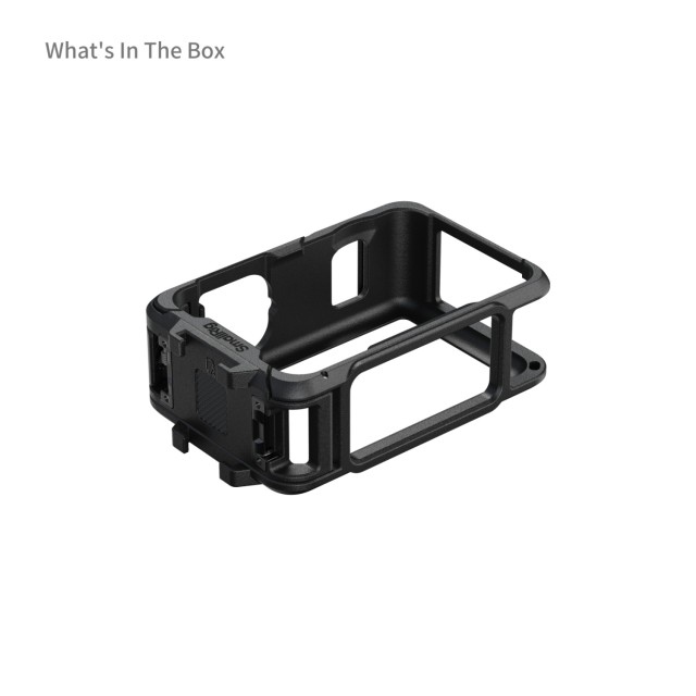 Okvir ima dva cold shoe priključka za pričvršćivanje LED video svjetala ili mikrofona te je kompatibilan s DJI Mic 2 i SmallRig LED video svjetlima (ID 5446). Opremljen je bočnim magnetskim priključkom za brzo otpuštanje radi kompatibilnosti s DJI-jevim originalnim dvostranim adapterom za brzo otpuštanje. Dizajn otvorenog dna omogućuje pristup ugrađenom magnetskom nosaču za brzo otpuštanje kamere i može se upariti s SmallRig dvostranim adapterima za brzo otpuštanje (ID 5890, 5779, 5918) za brzo prebacivanje između vodoravnog i okomitog snimanja. Odjeljak za bateriju ostaje dostupan bez uklanjanja okvira, što olakšava zamjenu baterije bez napora. Osim toga, okvir ima rupu za remen sa strane kako bi se spriječilo slučajno ispuštanje tijekom snimanja u ruci.