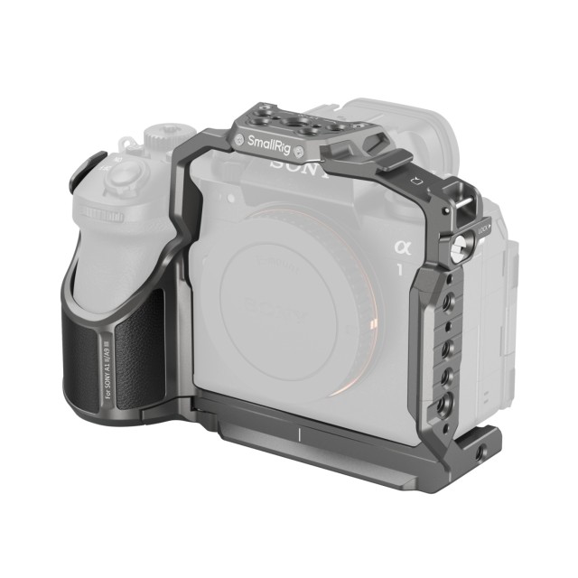 SmallRig Cage za Sony Alpha 1 II / Alpha 9 III 5187 dizajniran je za pružanje zaštite kamere i mogućnosti proširenja. Može se pohvaliti SmallRig patentiranom NATO tračnicom za brzo otpuštanje HawkLock i Arca-Swiss pločom, omogućujući sigurnu i besprijekornu montažu samozaključavanjem jednim klikom na dodatnu opremu HawkLock, kao što su bočne ručke (ID 4485), ploče za brzo otpuštanje (ID 4486) i gornje ručke (ID 4483). Dizajn zaključavanja u tri točke protiv skretanja čvrsto učvršćuje kameru pomoću dva vijka 1/4"-20 na dnu i desno, zajedno s M4 klinom za lociranje na dnu, eliminirajući potrebu za uklanjanjem D-prstenova. Ugrađeni jastučići pružaju sveobuhvatnu zaštitu i sprječavaju ogrebotine. Dodatno, vrata na šarkama na pretincu za baterije poboljšavaju prianjanje nudeći dodatnu potporu za mali prst.