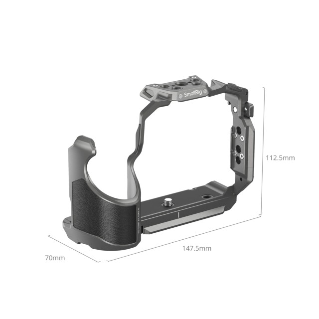 Dizajn zaključavanja u tri točke protiv skretanja čvrsto učvršćuje kameru pomoću dva vijka 1/4"-20 na dnu i desno, zajedno s M4 klinom za lociranje na dnu, eliminirajući potrebu za uklanjanjem D-prstenova. Ugrađeni jastučići pružaju sveobuhvatnu zaštitu i sprječavaju ogrebotine. Dodatno, vrata na šarkama na pretincu za baterije poboljšavaju prianjanje nudeći dodatnu potporu za mali prst.
