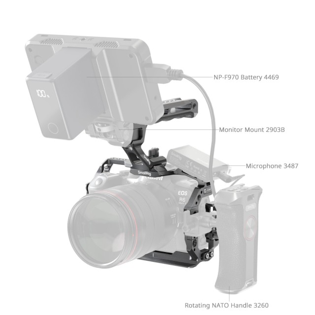 SmallRig Cage Kit za Canon EOS R6 Mark II 5197 dizajniran je za poboljšanje snimanja iz ruke, pružajući poboljšanu prenosivost i proširenje dodatne opreme. Komplet uključuje kavez, stezaljku za USB-C i HDMI kabel i udobnu gornju ručku za praktično nošenje fotoaparata i snimanje iz niskog kuta.