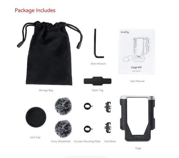 SmallRig Cage Kit za Canon PowerShot V10 je potpuna nadogradnja koja odmah nakon vađenja iz kutije pretvara vašu kompaktnu vlog kameru u profesionalni, zaštićeni i vrlo svestrani alat. Crni kavez od kompozitnih vlakana teži samo 42 g i minimalno ga čini većim, a istovremeno pruža potpuni pristup svim kontrolama i priključcima. Uključuje četiri ženska navoja od 1/4"-20 i dva hladna papučica za pričvršćivanje svjetala, mikrofona ili monitora. Dva višekratna krznena vjetrobranska zaštitna stakla - pričvršćena putem priloženih kružnih montažnih ploča - smanjuju buku vjetra do 20 dB za jasan zvuk na otvorenom, a dva adaptera za hladne papučice proširuju mogućnosti dodatne opreme. Mekani silikonski poklopac objektiva štiti objektiv tijekom putovanja, a podstavljena torba za pohranu drži sve na sigurnom. Komplet se sastavlja za nekoliko sekundi pomoću priloženog imbus ključa, što ga čini idealnim za vlogere koji stalno snimaju, kreatore sadržaja na putovanjima i kreatore sadržaja koji zahtijevaju izdržljivost, jasnoću zvuka i fleksibilnost postavljanja bez dodatne težine. Uz ograničeno dvogodišnje jamstvo proizvođača.