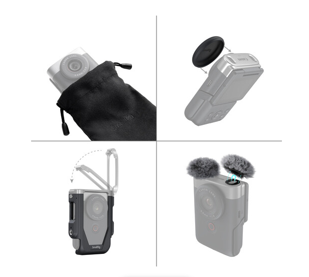 Poboljšajte svoj Canon PowerShot V10 uz SmallRig Cage Kit, lagani kavez od kompozitnih vlakana od 1,5 oz s četiri navoja 1/4"-20, dva hladna papučice, dva višekratna krznena vjetrobranska stakla (smanjenje buke vjetra do 20 dB), dva adaptera za hladne papučice, silikonski poklopac objektiva i torbu za pohranu…