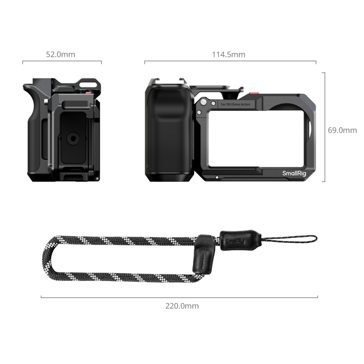 SmallRig Cage Kit za DJI Osmo Action 5 Pro / 4 / 3 5602 posebno je dizajniran za uličnu fotografiju s DJI Osmo Action 5 Pro / 4 / 3 kamerama. Kompletni komplet uključuje kavez, ručku i remen za nošenje oko ruke.