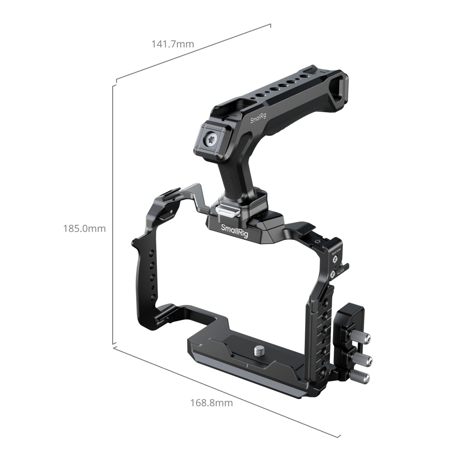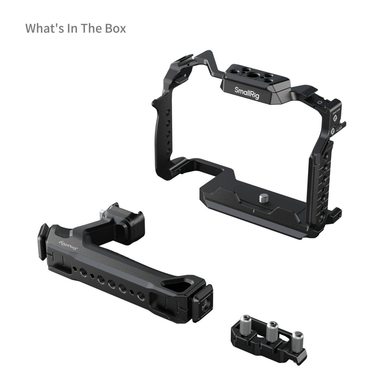 SmallRig Cage Kit za Panasonic G9 II / S5 II / S5 IIIX 5752 dizajniran je za pomoć pri snimanju iz ruke i pričvršćivanju dodatne opreme. Uključuje kavez, stezaljku za HDMI i USB-C kabel i gornju ručku, pri čemu se gornja ručka, ergonomski dizajnirana za bolji hvat, spaja na kavez putem NATO stezaljke, a stezaljka za kabel zategnuta vijkom može istovremeno pričvrstiti HDMI i USB-C kabele. Među točkama za montažu dodatne opreme, navojni otvori od 1/4"-20 podržavaju bočnu ručku 3323; nosači s hladnim papučicama odgovaraju držaču SSD-a 5196, mikrofonu, LED video svjetlu, monitoru itd.; a ARRI 3/8"-16 otvori za lociranje odgovaraju nosaču monitora 2903B. Također dolazi s HawkLock H21 NATO šinom s lijeve strane za bočnu ručku 4485 i otvorima za remen s obje strane, koji su kompatibilni s remenom za ruku. Osim toga, uključen je magnetski ključ za jednostavno rastavljanje i sastavljanje.